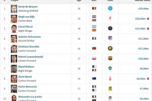 1-德布劳内,34岁,2000万,那不勒斯