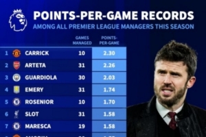 截至目前,本赛季英超主帅场均积分排名:卡里克2.3分居首,阿尔特塔次席的相关情况大致如此,后续仍需关注进一步消息。