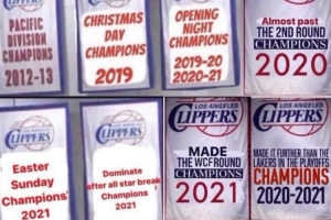 2020年 “差点闯过第二轮”冠军(嘲讽快船在2020年季后赛第二轮3-1领先被逆转)