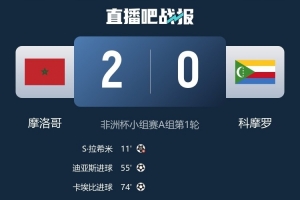 体育资讯12月22日讯 非洲杯揭幕战,摩洛哥2-0击败科摩罗。