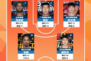CBA常规赛第4轮最佳阵容:克里斯 徐昕 陆文博 巴里·布朗 姜伟泽近期受到不少球迷关注,相关消息也在持续更新中,整体情况正在逐步明朗。