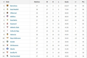 西甲2025年度积分榜:巴萨96分居首,皇马86分次席,马竞第4的整体进展暂时整理到这里,后续仍有变化空间。
