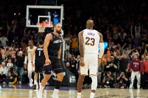 随着相关信息不断披露,狄龙再碰詹姆斯!ESPN预测明天胜率:湖人45.8% 太阳54.2%的情况逐渐清晰。