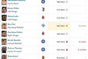现阶段德转意甲身价更新:劳塔罗最高8500万欧不变,帕斯涨至6500万欧的相关动态如上,后续发展值得持续关注。