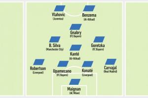体育资讯12月23日讯 法媒《队报》对明年6月合同到期的球员进行了盘点,组成了一套11人的阵容,其中包括了坎特、卡瓦哈尔、B席等人。
