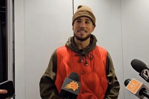 赛后,布克接受采访时谈到了队友狄龙·布鲁克斯的表现,他说道:“狄龙的表现吗?全是得分!这就是我们想让他做的事,可能再抢几个篮板就更好了。他今晚的表现让我想到了JR·史密斯,哈哈哈哈哈。”