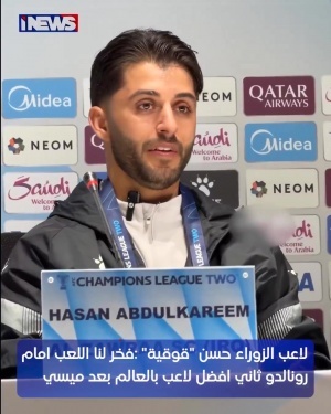 哈桑·阿卜杜勒卡里姆说道:当然,能与C罗交手对我们来说是莫大的荣幸。他是仅次于梅西的世界上最优秀球员。
