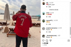 在社交媒体上,本泽马晒出了自己在沙滩上的背影照。有趣的是,他身披的是法国足坛传奇坎通纳的7号球衣。
