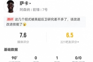 萨卡本场6射2正 1助攻+4关键传球 5过人3成功+6传中2成功 获7.6分相关话题近来热度不低,不少球迷也在关注事情的后续发展。