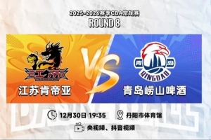 12月30日19:35,2025-26赛季CBA常规赛第八轮,江苏肯帝亚结束三连客,将回归主场丹阳市体育馆,迎战青岛崂山啤酒。