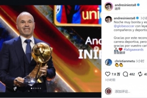 围绕获得生涯贡献奖!伊涅斯塔社媒:感谢对我职业生涯的认可,近期陆续出现了一些新的动态,引发了不少讨论。