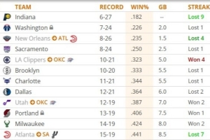7连败之后,老鹰战绩15胜19负,联盟倒数第12位。而马刺明年有权和他们互换首轮签。