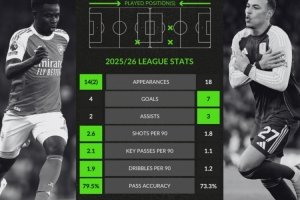 围绕萨卡、罗杰斯联赛数据对比:后者进球助攻更多,前者关键传球更多,近期陆续出现了一些新的动态,引发了不少讨论。