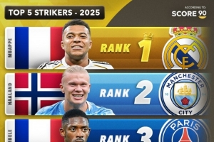 体育资讯12月31日讯 2025年世界足坛精彩纷呈,但也即将拉下帷幕。Score90媒体评选出各个位置的前5最佳球员,其中包括最佳中场、最佳进攻型中场、最佳防守型中场、最佳左边锋、最佳右边锋、最佳前锋、最佳左后卫、最佳右后卫、最佳中后卫、最佳门将。