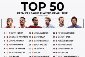 你认可吗外媒评英超历史50大球星:亨利第1 C罗第2 萨拉赫第6相关话题近来热度不低,不少球迷也在关注事情的后续发展。