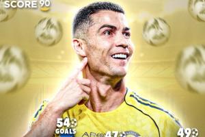 目前C罗职业生涯的进球数已经来到了957球,如果他想在明年实现生涯1000球的壮举,就需要在2026年打入43球。