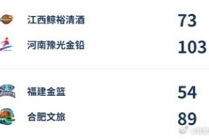 江西鲸裕清酒 73-103 河南豫光金铅,夏托利-沃克24分7篮板,斯塔福德20分13篮板获得两双,哈文茜15分,马文12分。江西女篮许艳雪18分,胡梦思15分,蒋佳彤14分6篮板,张瀞丹10分。