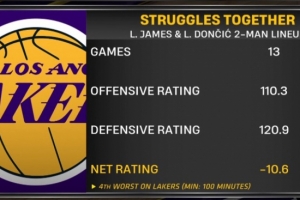 效果不佳!詹姆斯&东契奇同场时湖人净效率-10.6 防守效率仅120.9近期受到不少球迷关注,相关消息也在持续更新中,整体情况正在逐步明朗。