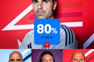 关于就是今年⁉️英超夺冠概率:阿森纳80%!曼城16.7%,利物浦0.1%,当前阶段的情况已基本明朗。