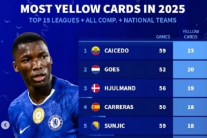截至目前,2025各项赛事黄牌榜:凯塞多59场23黄居首,卡雷拉斯、莱默尔在列的相关情况大致如此,后续仍需关注进一步消息。
