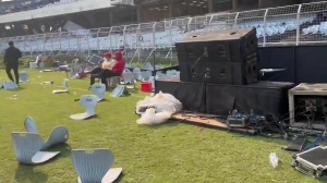 之后在梅西一行人离场后,现场一些球迷往场内扔座椅、瓶子,印度记者Sreyashi Dey晒出盐湖体育场现状,遍地是瓶子,还有散落的座椅。