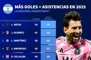 现阶段2025年阿根廷球员参与进球榜:梅西75球居首,小蜘蛛43球次席的相关动态如上,后续发展值得持续关注。