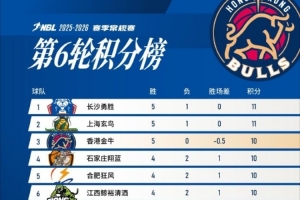 NBL联赛第六轮比赛结束后,香港金牛取得五连胜,目前积10分暂列积分榜第三位。