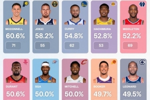 本赛季中投命中率前10:麦康纳第1 库里第3 KD第6 小卡第10现阶段能够确认的信息主要集中在以上内容。