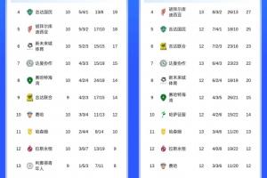 沙特联积分榜第10轮与第13轮对比,利雅得胜利从领先4分到落后4分