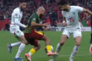 比赛第68分钟,姆伯莫带球突入禁区后痛苦倒地,裁判没有判给喀麦隆队点球,回放来看,摩洛哥球员与姆伯莫的右腿有一个接触。
