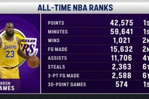 随着相关信息不断披露,活化石!转播方晒詹姆斯各项纪录:得分、时间、30+场次第一的情况逐渐清晰。