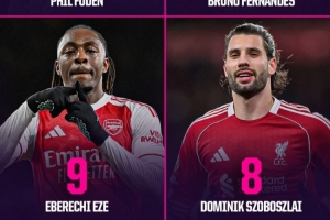 据Opta数据统计,自2023-24赛季开始以来,在英超球员中,仅有福登13球、布鲁诺·费尔南德斯10球和埃泽9球在所有赛事中的禁区外进球数多于索博斯洛伊的8球。