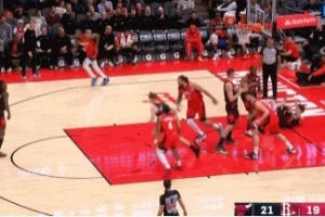 GIF-申京单打布泽利斯上篮得分 后者直接倒地后滚翻