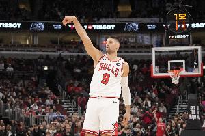 上半场,公牛内线武切维奇表现出色,进攻很高效,在14分钟的时间里,投篮10中7,三分球2中1,拿到15分4篮板3助攻1盖帽的数据,正负值+13两队最高。