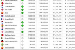 关于曼城球员薪资:哈兰德居首,塞梅尼奥15万镑第13,多库5万镑第23,当前阶段的情况已基本明朗。