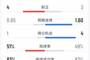关于尤文1-0博洛尼亚全场数据:射门13-12,射正3-4,得分机会4-1,当前阶段的情况已基本明朗。