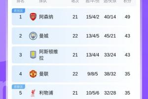 积分榜:曼联积35分升第四,曼城先赛仍43分落后榜首阿森纳6分近期受到不少球迷关注,相关消息也在持续更新中,整体情况正在逐步明朗。