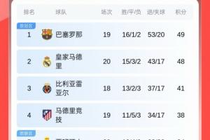 积分榜:皇马先赛落后巴萨1分,巴萨本轮客场挑战皇家社会近期受到不少球迷关注,相关消息也在持续更新中,整体情况正在逐步明朗。