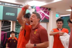 而在比赛结束后,本场比赛的功臣门将李昊也是被队友高高抛起,在更衣室内安东尼奥称赞队员们“太有胆了!”,球员们朝着安东尼奥泼水庆祝!