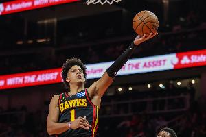 本场比赛,老鹰球员杰伦·约翰逊表现可以,连续第四场比赛拿到三双,在35分钟的时间里,投篮17中5,三分球1中0,罚球2中2,拿到12分10篮板12助攻1抢断1盖帽的数据。