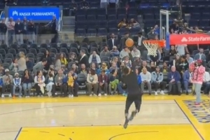 赛前,勇士球星库里上脚李宁韦德之道12进行热身,背身抛球助跑勉扣可惜未能成功。