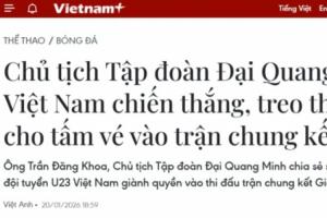 报道称,大光明集团董事长陈登科表示,他一直密切关注越南足球,特别是越南U23在亚洲杯上的表现,他相信越南U23能够继续充满信心、团结一致的比赛,力争闯入决赛。