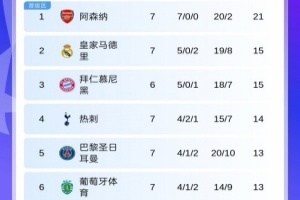 欧冠第7轮首日积分:枪手全胜!皇马暂升第2 曼城跌第7国米跌第9的整体进展暂时整理到这里,后续仍有变化空间。