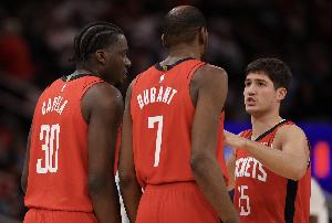 火箭目前26胜15负,西部第4位,距离第3的掘金1.5个胜场。