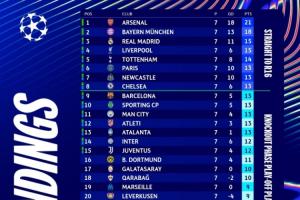 目前欧冠前二名阿森纳和拜仁确定了直通16强名额,但有且仅有他们两队。从第3的皇马往后数,有10多支球队将竞争直通淘汰赛的名额,其中第6巴黎到第13亚特兰大均为13分,8队同分竞争难度可想而知。