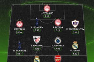 后卫:科斯蒂尼亚(奥林匹亚科斯)、罗梅罗(热刺)、雷索斯(奥林匹亚科斯)、贾法尔古利耶夫(卡拉巴赫)