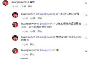 黄博文:训练时候特点还没看出来吗,定位球哪是我特点啊
