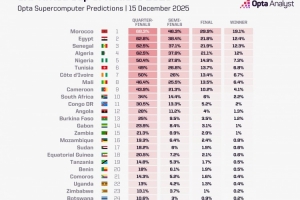 Opta预测非洲杯夺冠概率:摩洛哥19.1%居首,埃及、塞内加尔前三近期受到不少球迷关注,相关消息也在持续更新中,整体情况正在逐步明朗。