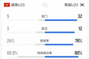 关于120分钟越南U23 2-2 韩国U23数据:韩国32射12正,控球达到76%!,当前阶段的情况已基本明朗。