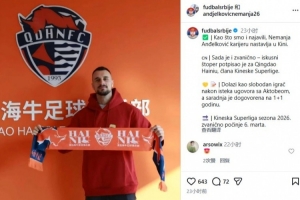 该媒体报道,安杰尔科维奇在合约到期后离开阿克托比,成为自由球员,随后与青岛海牛俱乐部签订了“1+1”的合同。